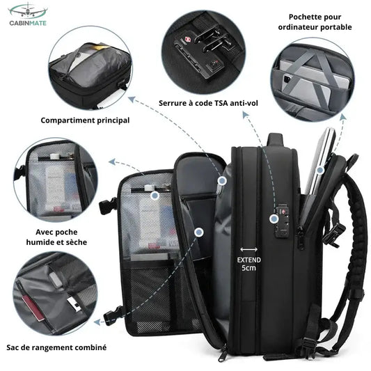 Sac à Dos Cabine Avion 40x30x20 - Voyagez Léger & Malin