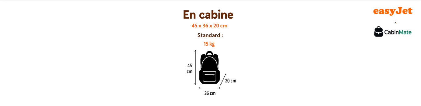 1. Le format autorisé par easyJet : 45 × 36 × 20 cm