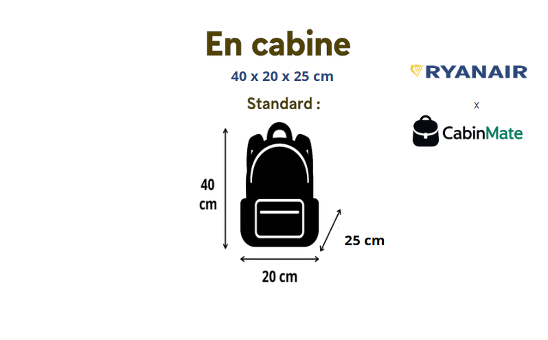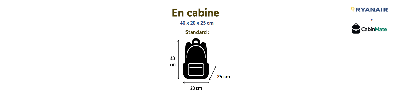 1. Le format cabine gratuit chez Ryanair : 40 x 20 x 25 cm